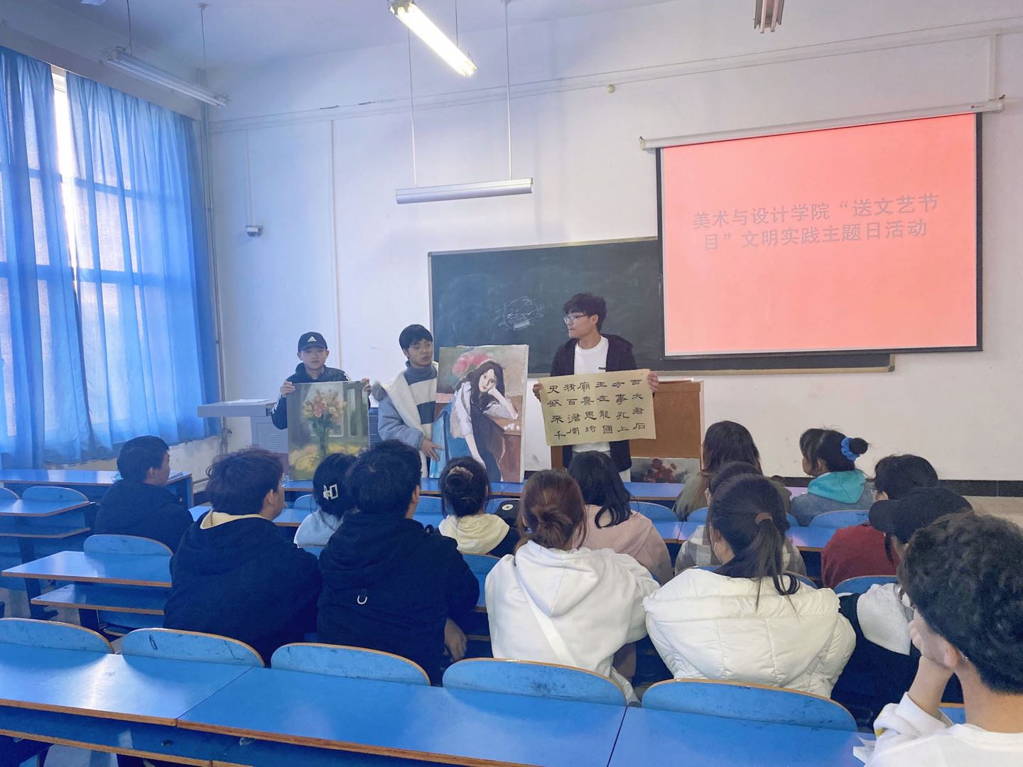 3月4日中午,我院在艺术楼216教室开展“送文艺节目”文明实践主题日活动。通过用艺术展示、绘画体验以及交流会的形式宣扬文明新风,树立文明意识。