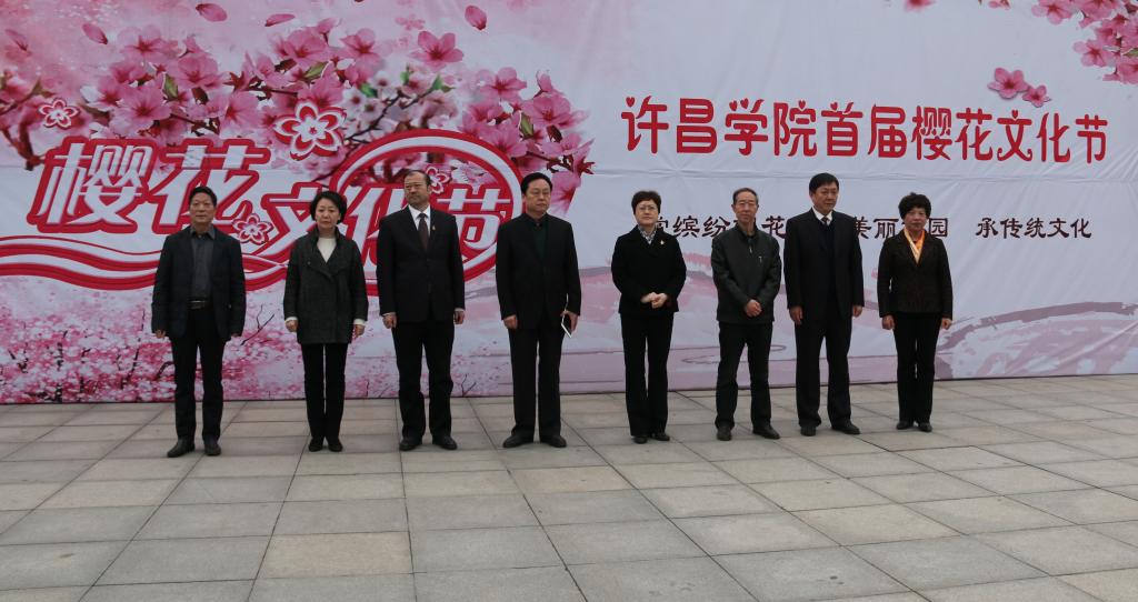 “微雨燕双飞,竞惹樱花醉。”2017年3月20日上午十点,许昌学院首届樱花文化节开幕式在学术报告厅前顺利举行。许昌学院院长赵继红、党委副书记马超、副院长赵正风、崔斌、黄怡俐、纪委书记罗凤英、许昌市政协副主席、许昌市诗词协会名誉会长李俊恒、许昌学院原党委副书记、中原农耕文化博物馆名誉馆长汪庆华出席仪式。校职能部门主要负责人及各二级学院师生代表共1000余人参加仪式。仪式由党委宣传部部长冯晓民主持。