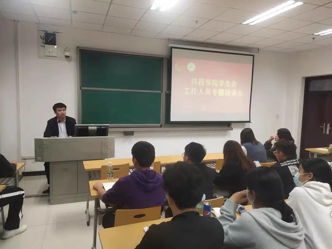 为持续推动学生会组织深化改革,贯彻落实从严治会要求,加强学生会组织工作人员宗旨意识和规章制度教育,10月13日,许昌学院学生会召开校院两级工作人员培训会,校学生会全体成员及各二级学院学生会主席团成员参加会议。