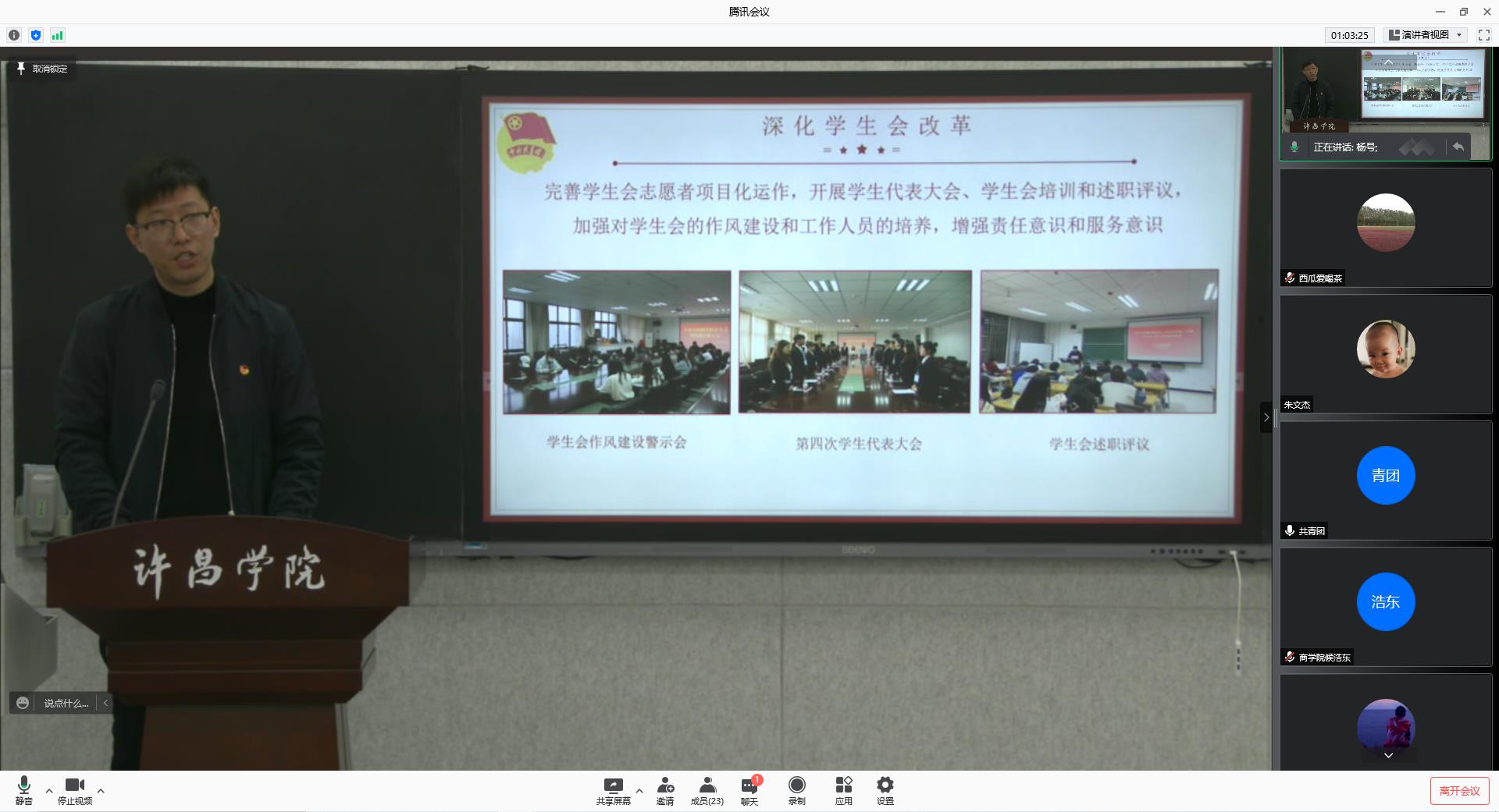 根据疫情防控要求,此次会议以腾讯会议形式分组召开,由各学院党委副书记、团干部代表和团员青年代表组成评议小组,对各学院(书院)团委负责人的述职情况进行评价。