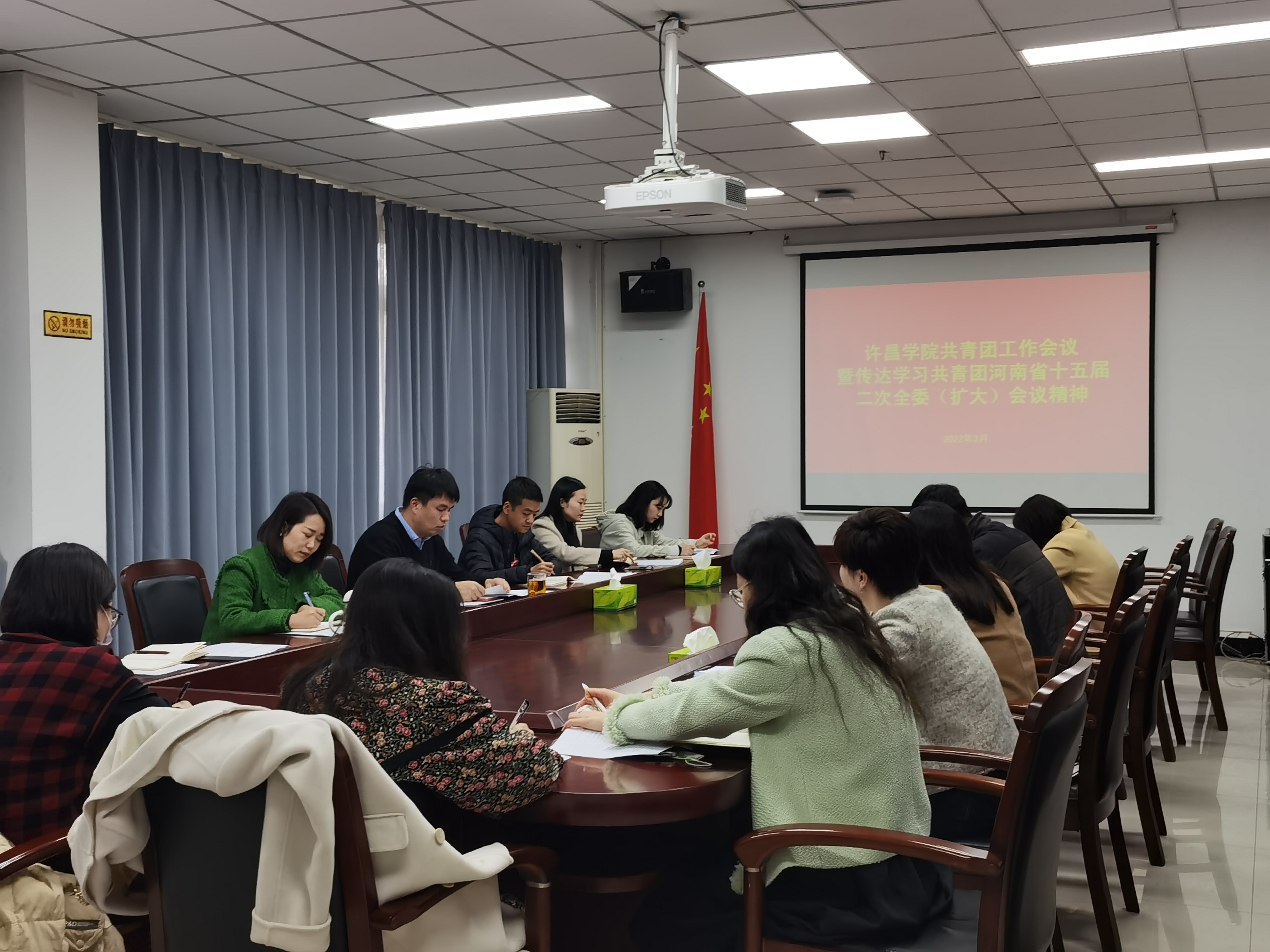 3月3日下午,我校在办公楼第四会议室召开共青团工作会议暨传达学习共青团河南省十五届二次全委(扩大)会议精神。校团委全体工作人员、各学院(书院)团委负责人参加会议。