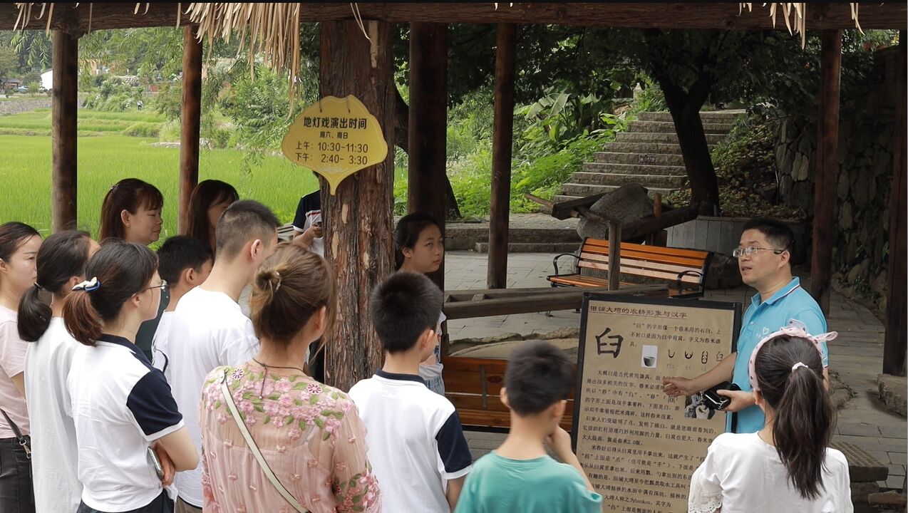 7月12日,我校“乡间字里”文旅志愿服务队成员来到田铺大塆,组织到大塆旅游的中小学生参加“汉字寻宝奇妙游”的游戏,为大家讲解汉字“其”和“臼”的由来,让孩子们可以在游览古村落的过程中,感受浓厚的中国汉字文化。